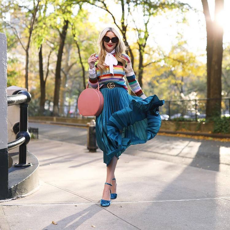 - Pode conjugar a sua saia evasé com camisolas de malhas finas, nas cores da moda da estação, ou com camisas e completar com um blazer, sapatos ou botas, conforme o gosto pessoal e o estilo.