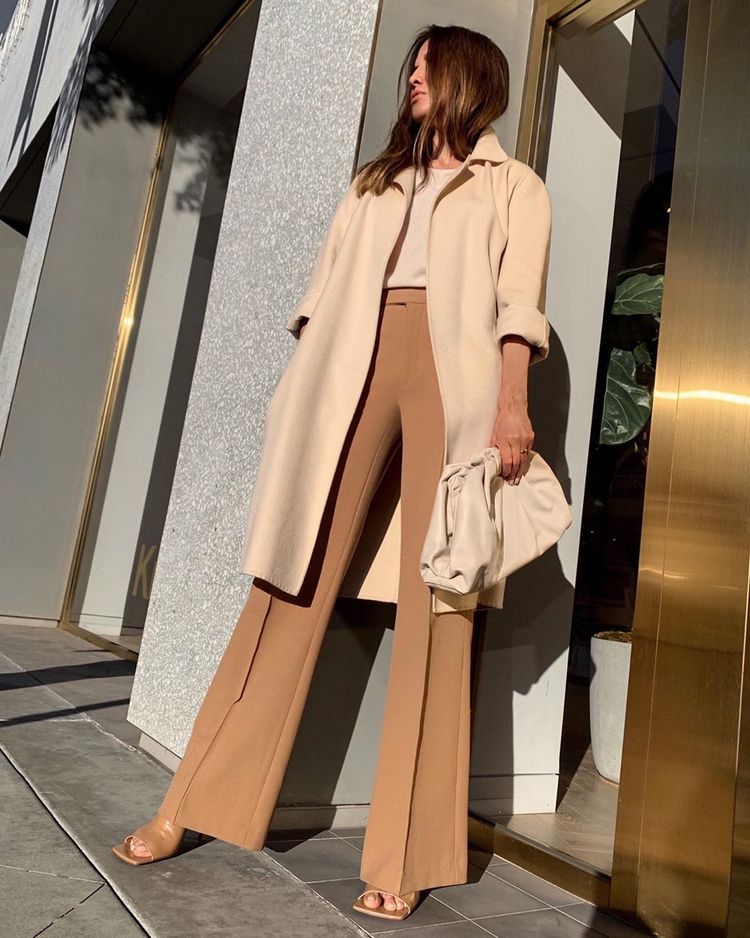 Se tiver uns quilinhos a mais, pode optar por um coordenado de calças e blusa dentro dos mesmos tons, o que vai adicionar à sua silhueta elegância e a ilusão de estar mais magra