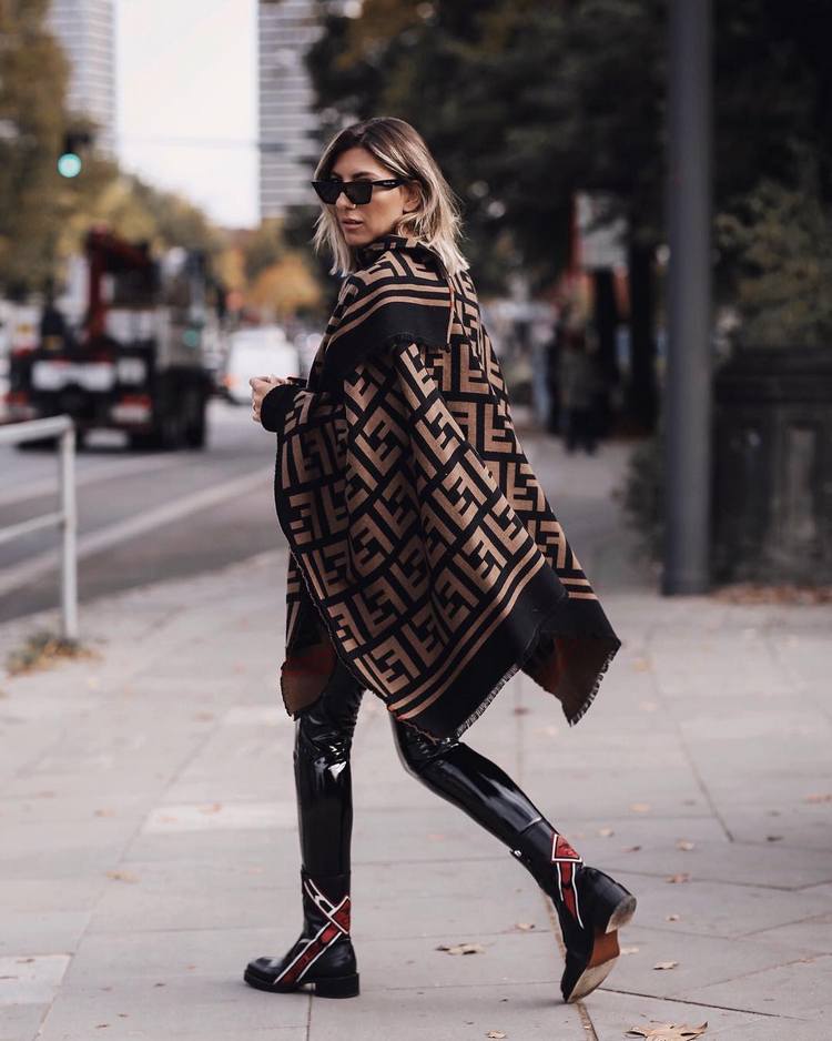 - As capas e ponchos podem ser combinados com calças de couro, skinny jeans e leggins; ou collants, no caso de saias ou vestidos, que são a melhor opção.