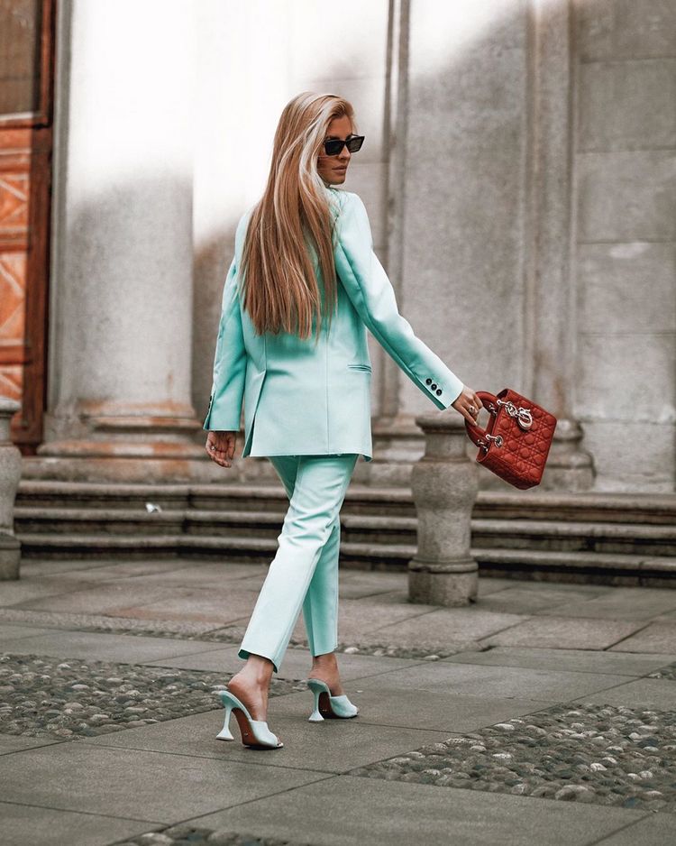 O lado conservador do fato feminino, impõe respeito e tem um cunho masculino, que confere sobriedade – apesar de ser tremendamente feminino e sedutor, dependendo da forma como o veste. O azul suavizou-se para dar as boas vindas à estação primavera verão e foi foi a cor eleita pela Pantone.