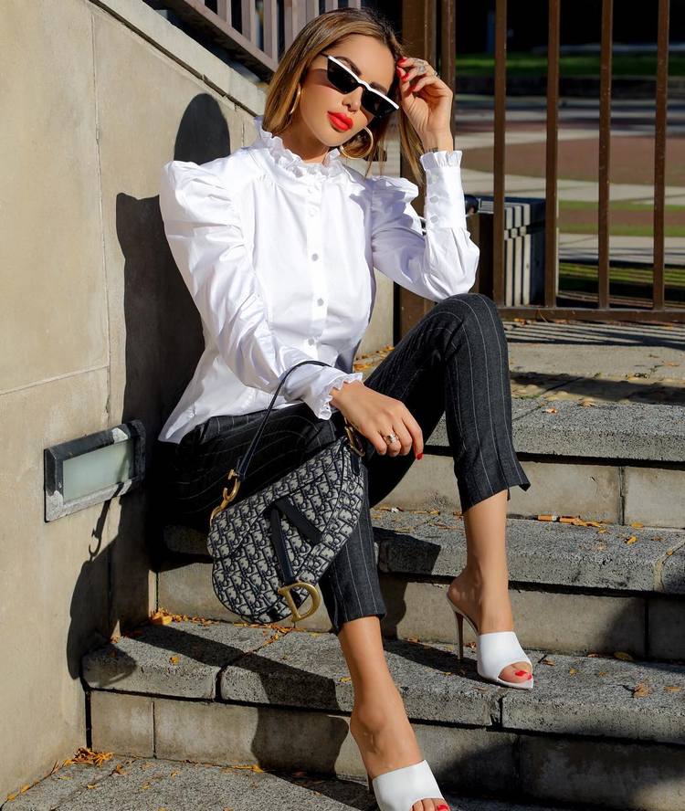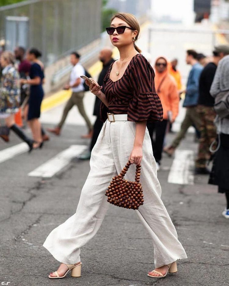 As calças largas de cintura subida devem ser usadas na altura certa e de preferência com saltos altos, pois vão dar a ilusão de pernas mais longas, o que favorece mulheres de estatura baixa. Se tiver uns quilinhos a mais, pode optar por um coordenado de calças e blusa dentro dos mesmos tons, o que vai adicionar à sua silhueta elegância e a ilusão de estar mais magra.