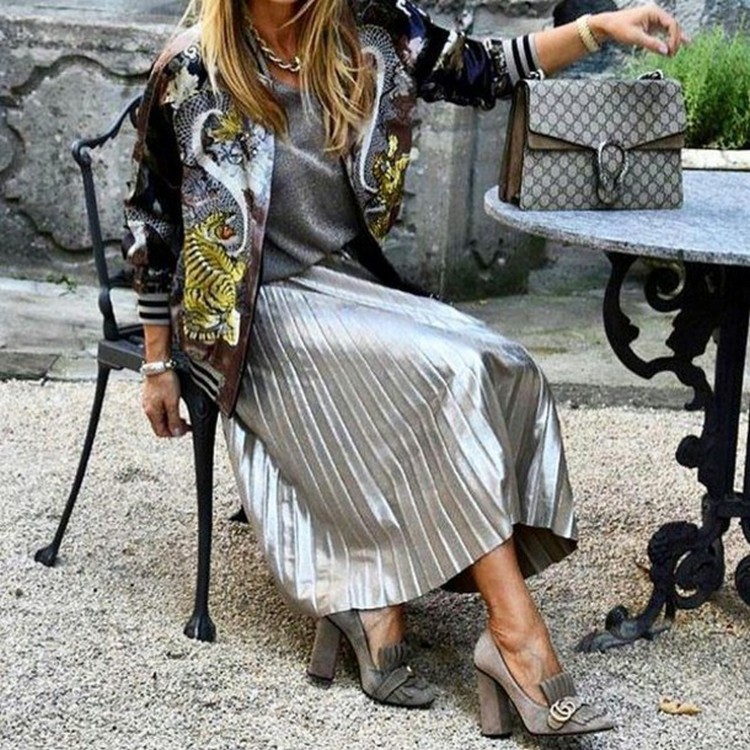 A saia plissada é um clássico do nosso guarda-roupa que nunca passa de moda. E por isso, é uma peça de roupa que tanto pode ser usada no inverno com uma camisola de gola alta, uns botins e um sobretudo, como na primavera, com uma blusa de laçada, uma gabardine e uns ténis ou umas mules, conforme o estilo e gosto pessoal. Pode igualmente ser coordenada com um cardigan comprido, ou com um blusão de pele e com uns sapatos de salto alto. Ou seja, a saia plissada é uma peça de roupa que faz inúmeras conjugações, haja criatividade.