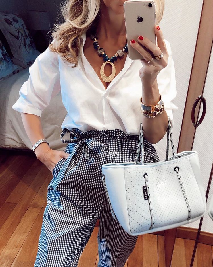- Camisa branca; de tecido fluído, bom corte e que não seja demasiado masculina.