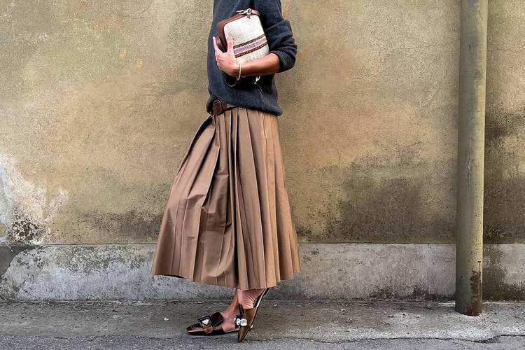 Camisas cintadas, casacos tipo modelo Chanel, calças justas de cores mais claras.